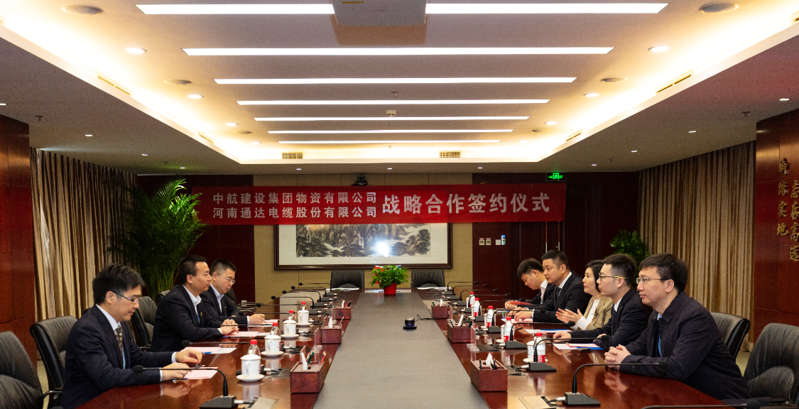 3月18日上午,河南91香蕉频蕉APP下载電纜股份有限公司(以下簡稱“91香蕉频蕉APP下载股份”)與中航建設集團物資有限公司(以下簡稱“中航建設物資公司”)戰略合作簽約儀式在中航建設集團公司三層視頻會議室舉行。中航建設集團公司黨委副書記、總經理王建紅,副總經理郝以朋,綜合管理部部長孟雪,規劃發展部副部長陳偉華,91香蕉频蕉APP下载股份董事長馬紅菊,項目事業部總經理蘇俊旗,北京辦事處負責人柴帥璽等相關人員出席儀式。