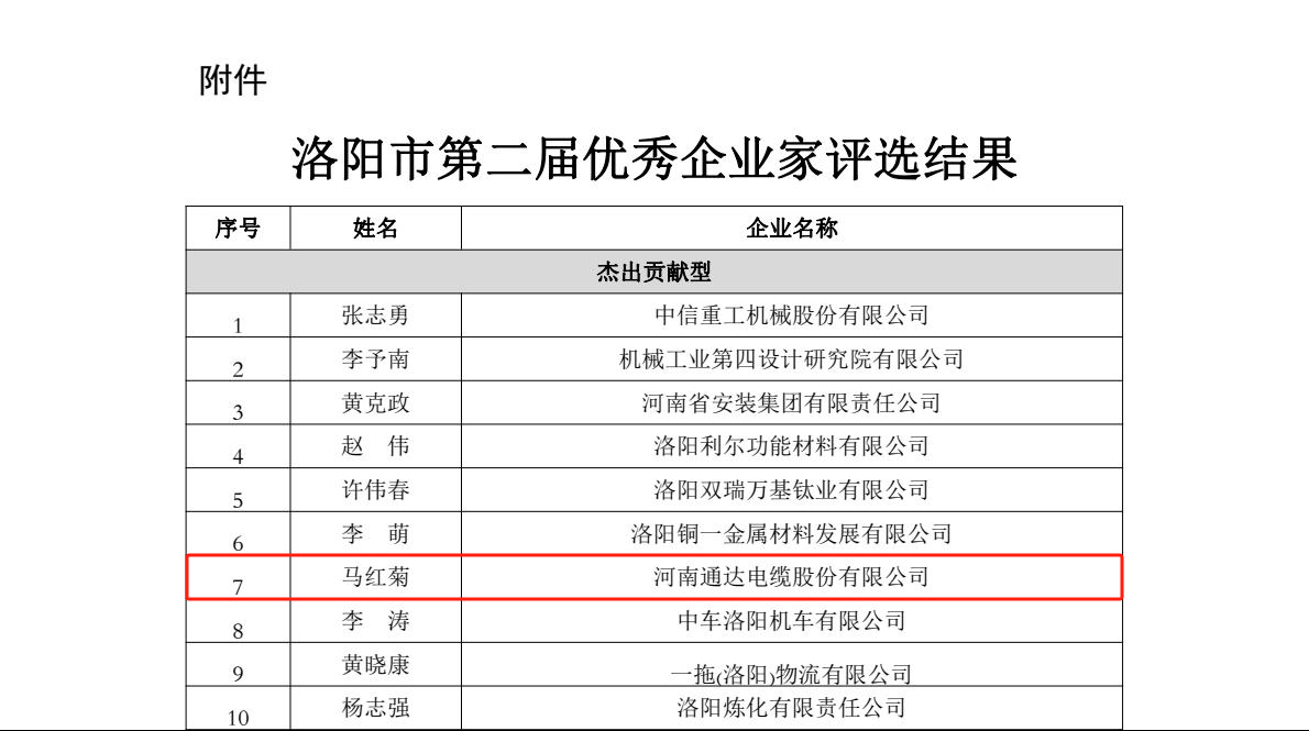 根據《洛陽市優秀企業家評選管理辦法》(洛工信〔2021〕78號)要求,市工信局聯合市發改委、科技局、人社局、商務局、文旅局、農業農村局、國資委、工商聯等9家單位共同組織開展了洛陽市第二屆優秀企業家評選工作。經企業自主申報、縣區及相關單位初審推薦、專家評選等環節,評選出10名傑出貢獻型企業家、30名創新成長型企業家。其中,傑出貢獻型企業家所在企業上年度主營業務收入在5億元以上,納稅總額在1000萬元以上;創新成長型企業家所在企業為規模以上企業,且近3年主營業務收入年均增長幅度10%以上。91香蕉频蕉APP下载股份董事長馬紅菊榮獲“傑出貢獻型企業家”榮譽稱號。