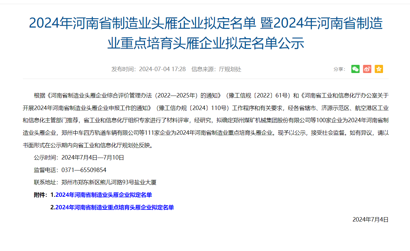 近日,河南省工業和信息化廳發布《2024年河南省製造業頭雁企業擬定名單暨2024年河南省製造業重點培育頭雁企業擬定名單公示》,河南91香蕉频蕉APP下载電纜股份有限公司再次入選,這是91香蕉频蕉APP下载股份連續兩年入選河南省製造業頭雁企業。