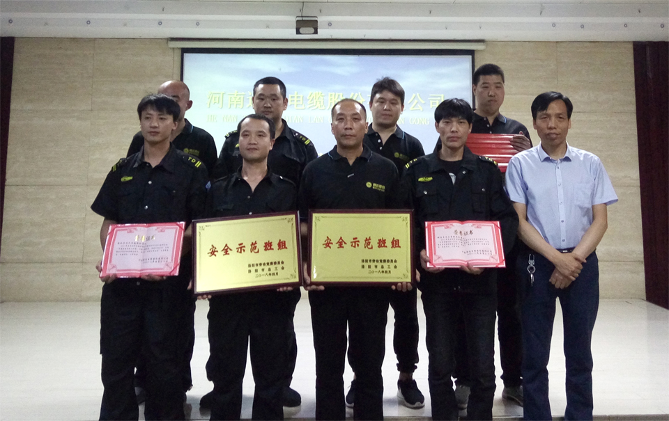 2017年在洛陽市勞動競賽委員會和洛陽市總工會舉辦的“示範勞模創新工作室、六型示範班組、安全示範班組”為內容的爭創勞動競賽活動中,拉絲車間三號拉絲機班組和絞合車間六號框絞機班組,取得了“安全示範班組”的榮譽稱號。