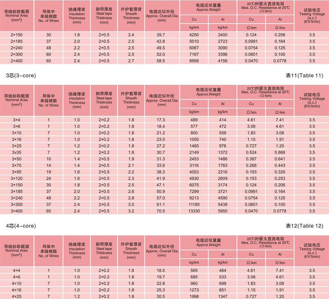 0.6/1kV PV℃絕緣鋼帶鎧裝PV℃護套阻燃或非阻燃香蕉污视频下载(見表9-16)