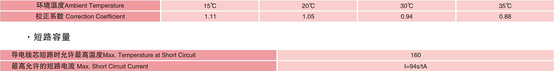 - 短路時(最長持續時間不超過5s) 電纜導體的最高溫度不超過160C。