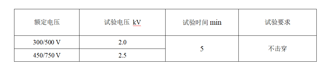 2、成品電纜應通過表中規定的耐壓試驗。